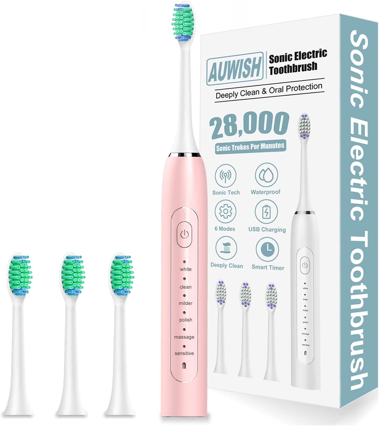 Electric Toothbrush for Kids and Sensitive Teeth Adult, Gentle Brushing Electric Toothbrush with 4 Medium Brush Heads, 45 Days Use Fast Charge Rechargeable Electric Toothbrushes for Girl and Boy