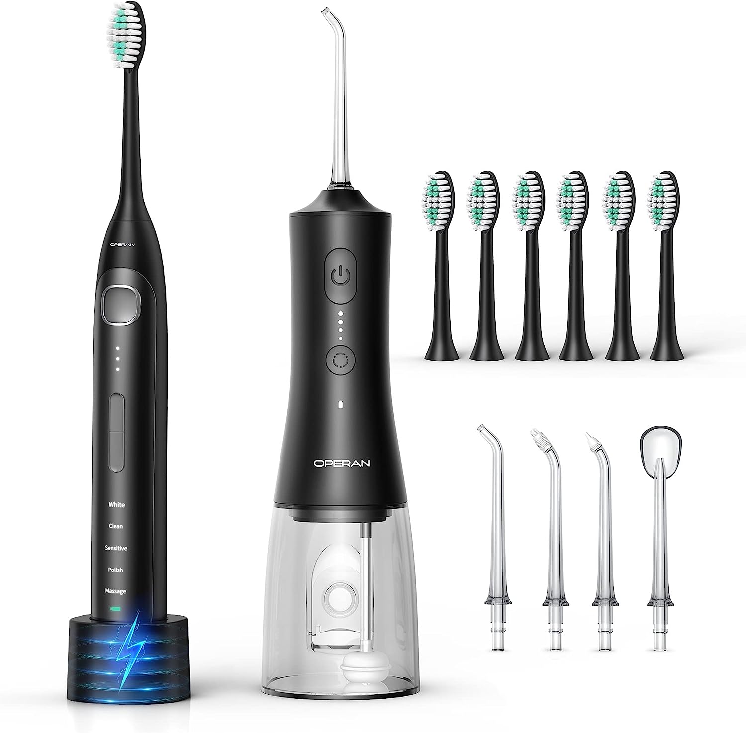 Electric Toothbrush with 6 Brush Heads Black Bundled Water Flosser Black