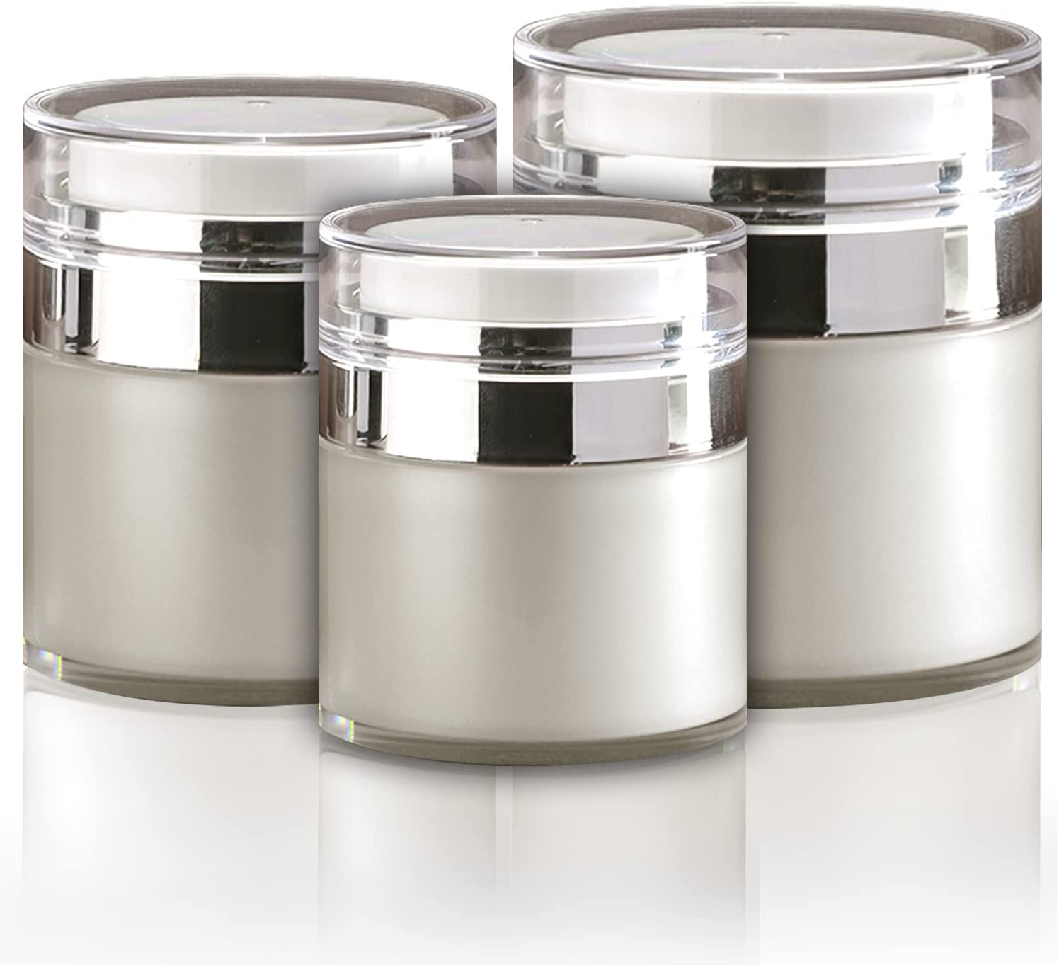Empty Airless Cosmetic Container With Silver Ion Coating – 3pcs (0.5oz + 1oz + 1.7oz) – Airless Pump Jar for Cosmetic – The Best Refillable Container for Lotions, Gels & Creams – Leak Proof Portable Travel Size Container For Moisturizer