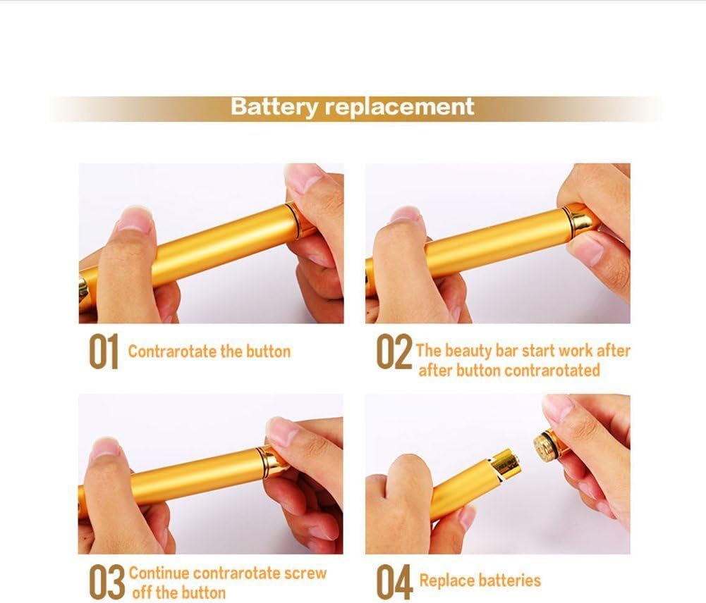 Only 1 aa battery required 24k gold beauty bar, Vibration frequency: About 6000-7000 times/minute, It is safe and efficient to promote the blood circulation.