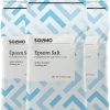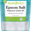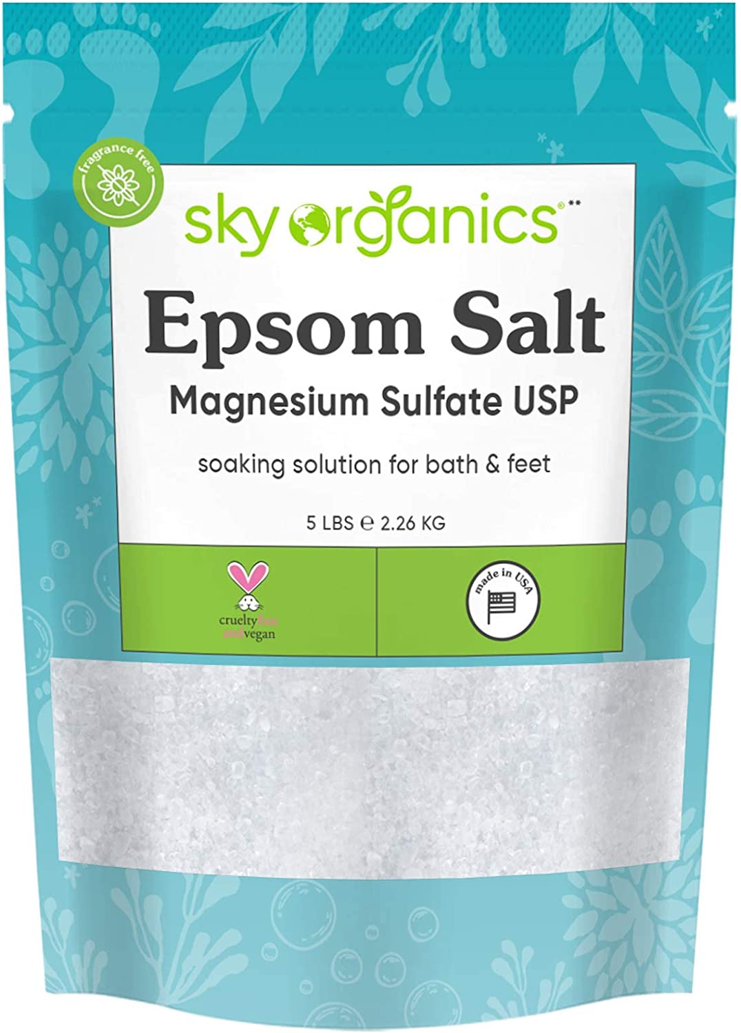 Bath: Add 2 cups of Epsom Salt to warm, running bath water. Soak for 20 minutes to help relieve stress and combat muscle stiffness. Shower: Exfoliate skin in the shower by mixing a handful of Epsom Salt with your shower gel or coconut oil and massaging onto the skin. Foot Soak: Mix one cup of Epsom Salt in a foot bath and soak feet for 10 minutes to help relieve soreness.