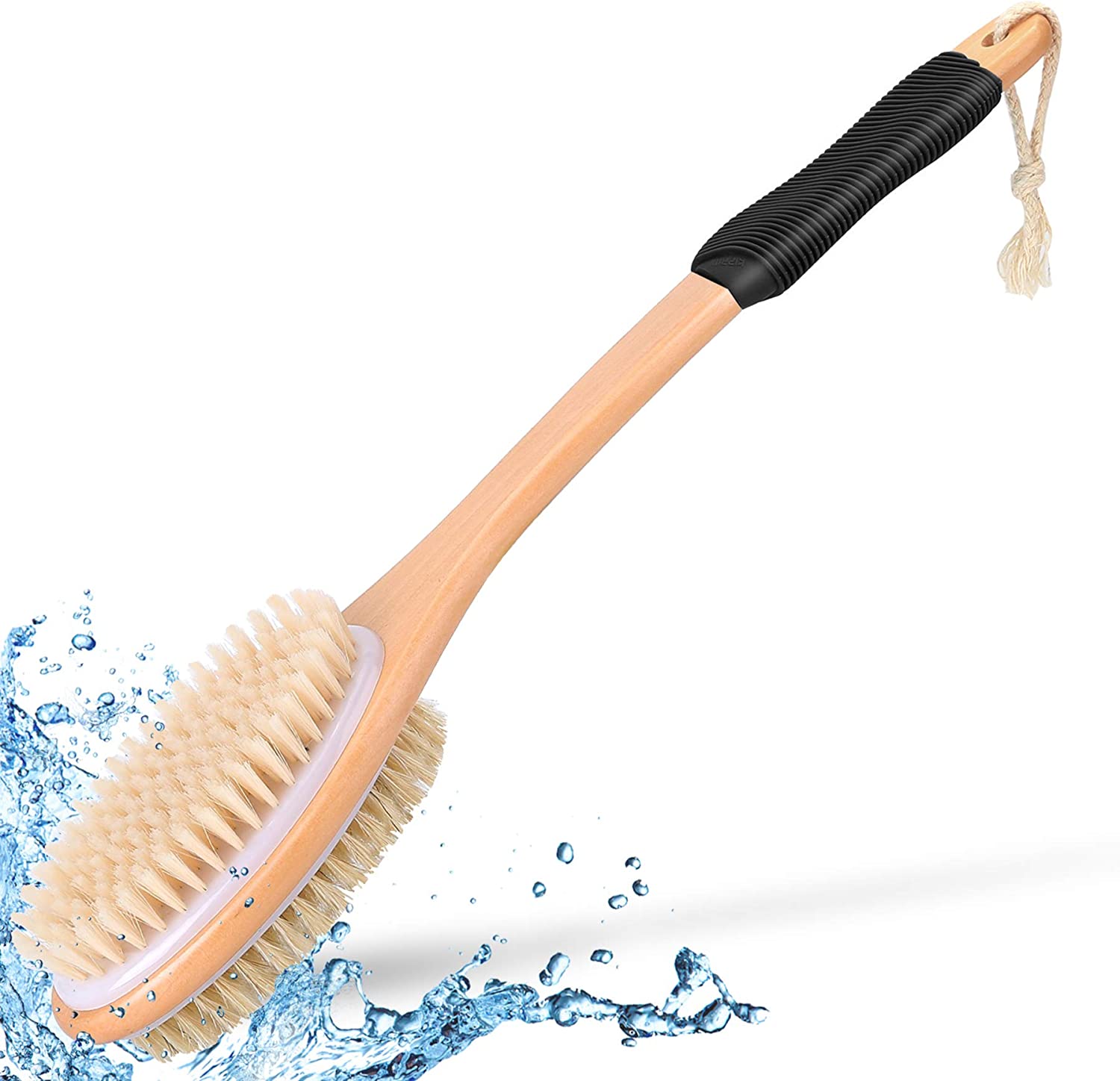 Back Brush for Dry & Wet : When dry brushing, you can use the stiff side to massage the skin, stimulate blood circulation, improve skin quality and relieve stress. When wet brushing, you can combine the shower gels or scrub, it will go deep into the pores to remove dirt and balance oil, to provide a good bathing experience and cleaning effect.