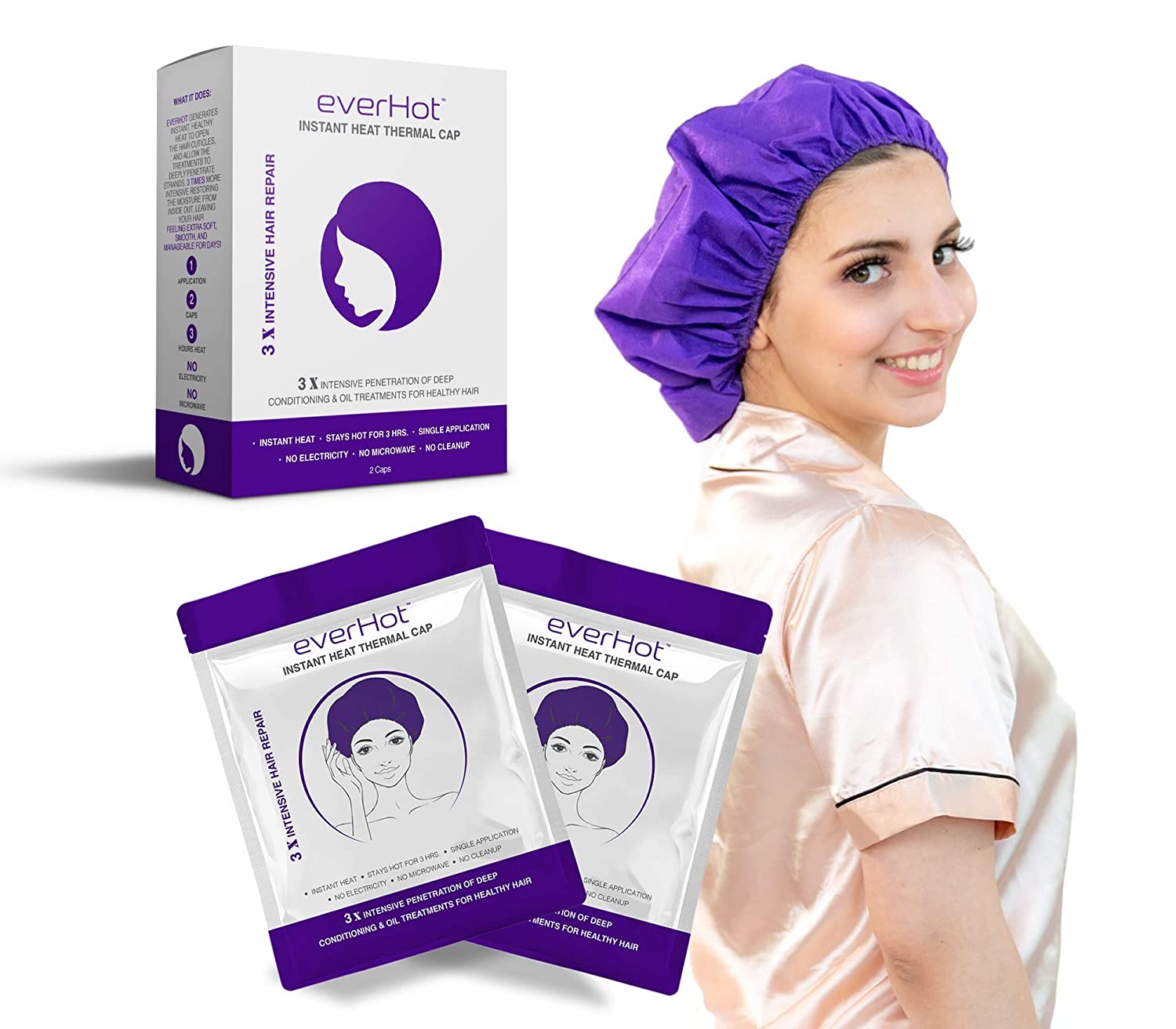 Everhot Instant Heat Thermal Cap – 3 Hours Heat – No Electricity No Microwave – Heat Cap For Deep Conditioning (2 Pack – Double Diva)