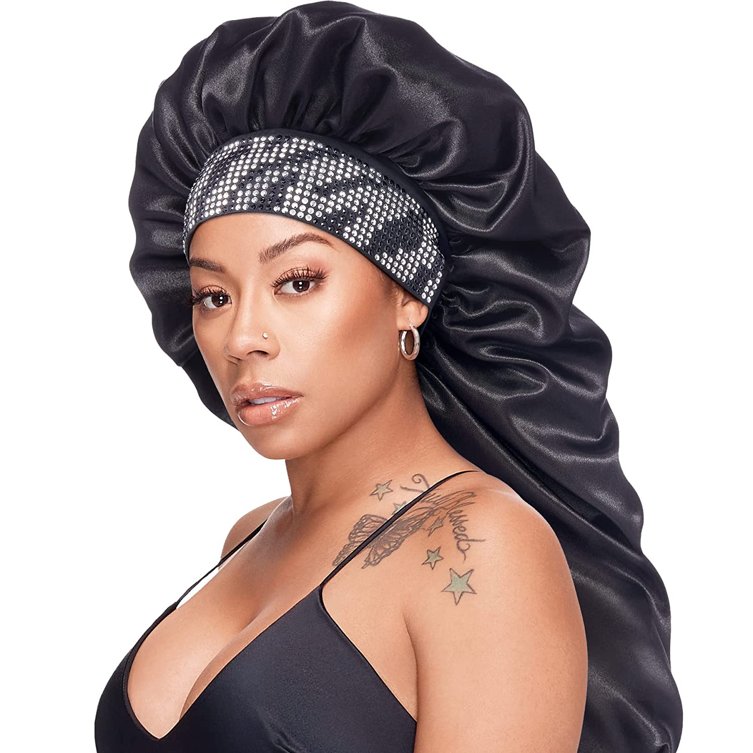 Extra Large Shower Caps For Women Men Black Adjustable Satin Lined Bonnets Waterproof Xl For Curly Long Hair Braids