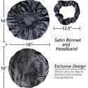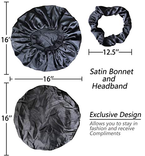 Unique Extra-Long Size Design: Large Bonnet Part-Length: 16/42cm, Width: 16/42cm,Large enough to fit your natural hair, braids, curly hair, frizzy hair,rollers and women with Extra Large extensions completely; Elastic Headband- Maximum stretching length 12.5/31cm, you can use it as a headset or put it on your hand, as you like.