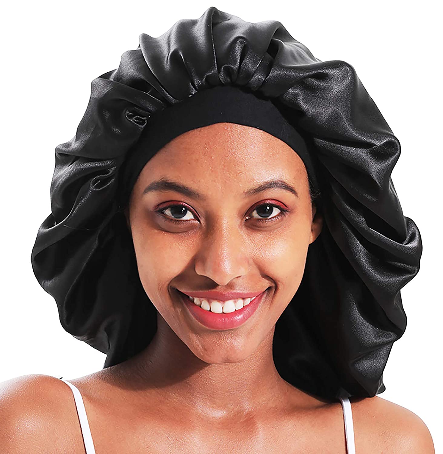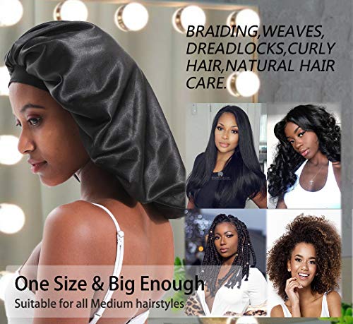 Satin Lined Design: Classy silky satin fabric is ideal for sensitive scalps. Lock the moisture in your natural hair and reduce breakage while sleeping. Provides total head coverage ,protect your hair from drying and roughening. Make you feel safe because the silk night cap can stay on your head all night and keep hair in place.