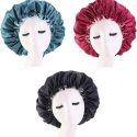 Extra Long Colorful Satin Bonnet Sleep Cap Long Bonnet For Braids Hair Loose Cap (Blue Flowers)