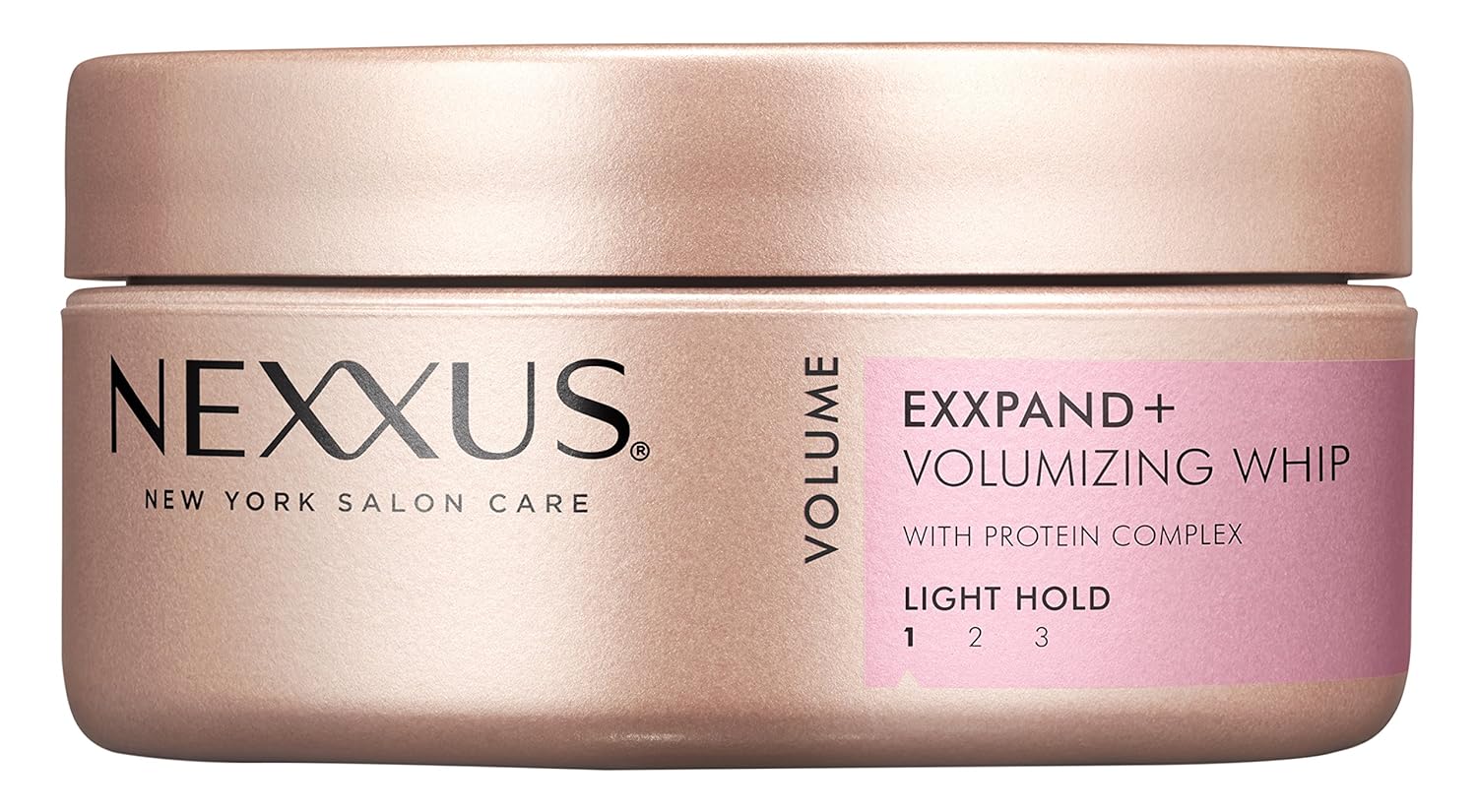 Exxpand+ Volumizing Hair Whip glides onto hair, adding grip and control that can last all day long and is best used as a hair foam mousse with your favorite Nexxus Regimen.