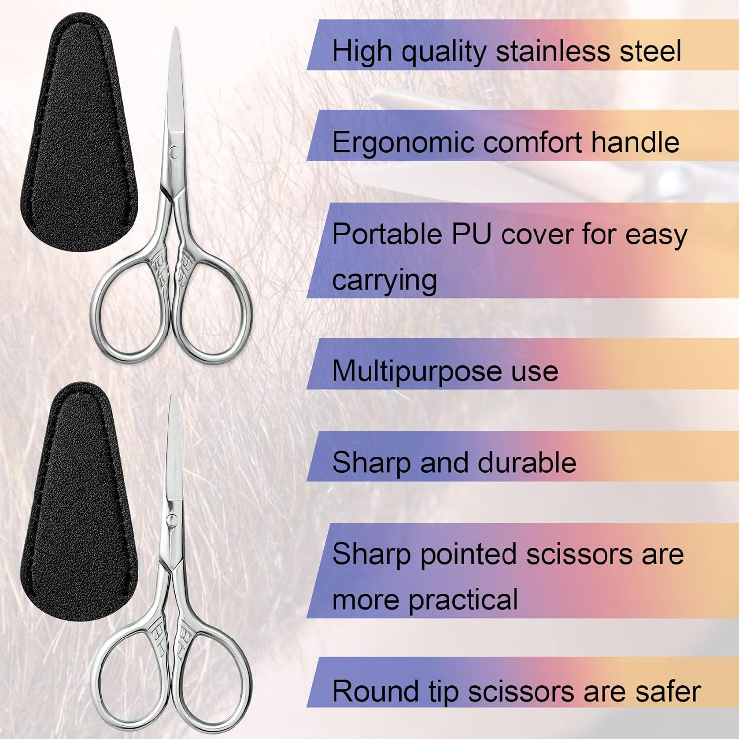 【Grooming Scissors】This small scissors beauty facial hair scissors is designed to meet your essential cutting needs, such as mustache, nose, beard, eyebrows, eyelashes, ear hair cutting scissors, ideal for cutting unwanted facial hair, body hair and eye brow hair.