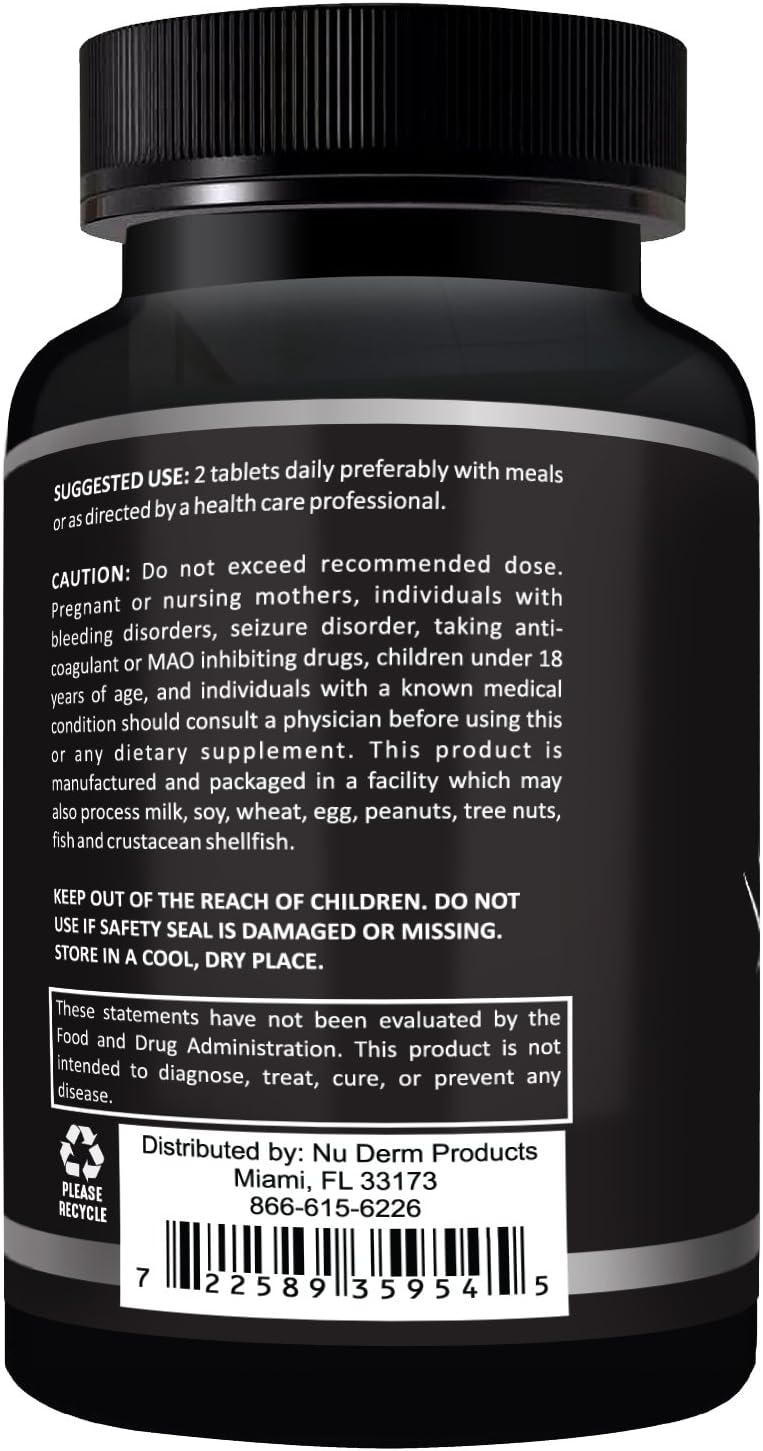Vitamin A (beta carotene) 10000 IU 200% Vitamin C (ascorbic acid) 250 mg 417% Vitamin E (d-Alpha tocopheryl succinate) 12 IU 40% Vitamin B-1 (thiamine mononitrate) 30 mg 2000% Vitamin B-2 (riboflavin) 100 mg 5882% Niacinamide 30 mg 150% Vitamin B-6 (pyridoxine HCl) 100 mg 5000% Folic Acid 400 mcg 100% Biotin 4000 mcg 1333% Pantothenic Acid (calcium pantothenate) 250 mg 2500% Calcium (carbonate) 200 mg 20% Zinc (amino acid chelate) 5 mg 33% Copper (gluconate) 1 mg 50% Choline Bitartrate 250 mg * Silica (bamboo 70% extract) 40 mg * Inositol 250 mg * PABA (para-aminobenzoic acid) 100 mcg * L-Cysteine 100 mcg * MSM (methylsulfonylmethane) 50 mg * Ginkgo biloba Leaf (24% extract) 30 mg * Saw Palmetto Fruit (5:1 extract) 250 mg * Pygeum africanum Bark (5:1 extract) 100 mg * Green Tea Leaf (98% extract) 50 mg * Grape Seed (95% extract) 50 mg