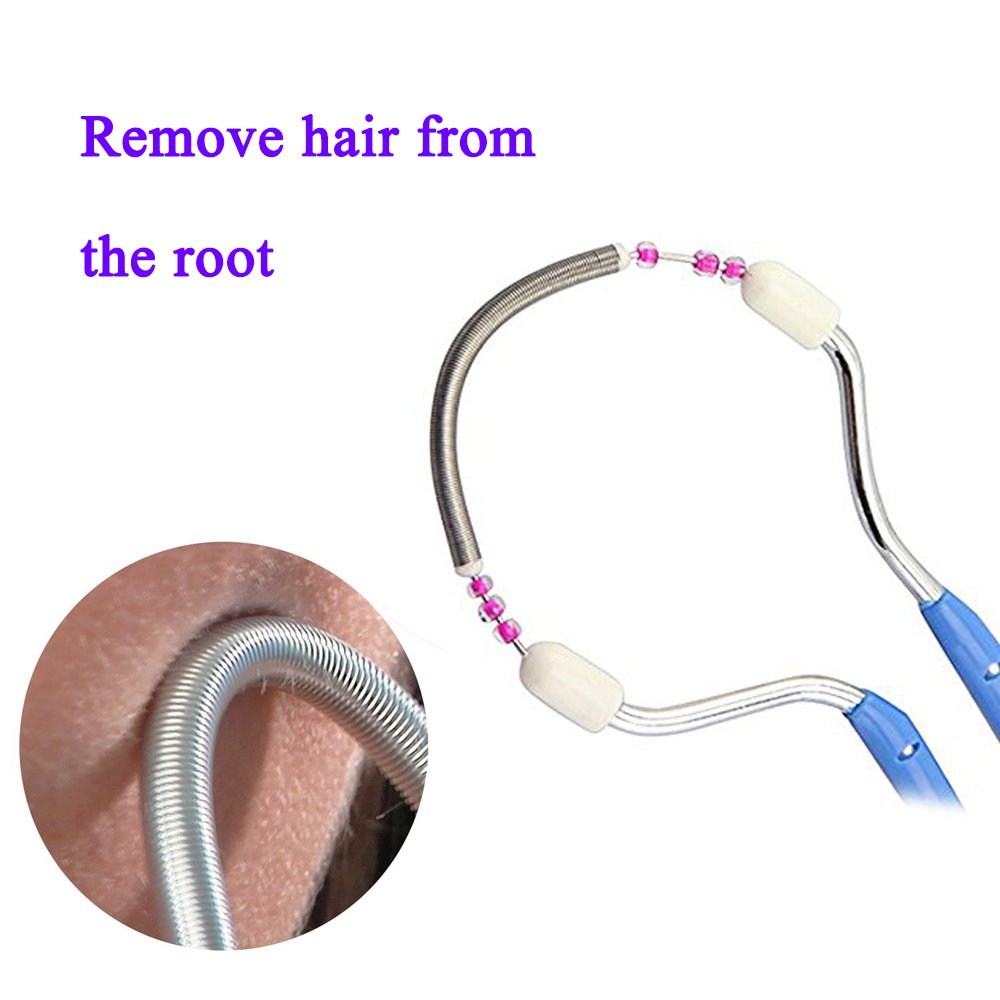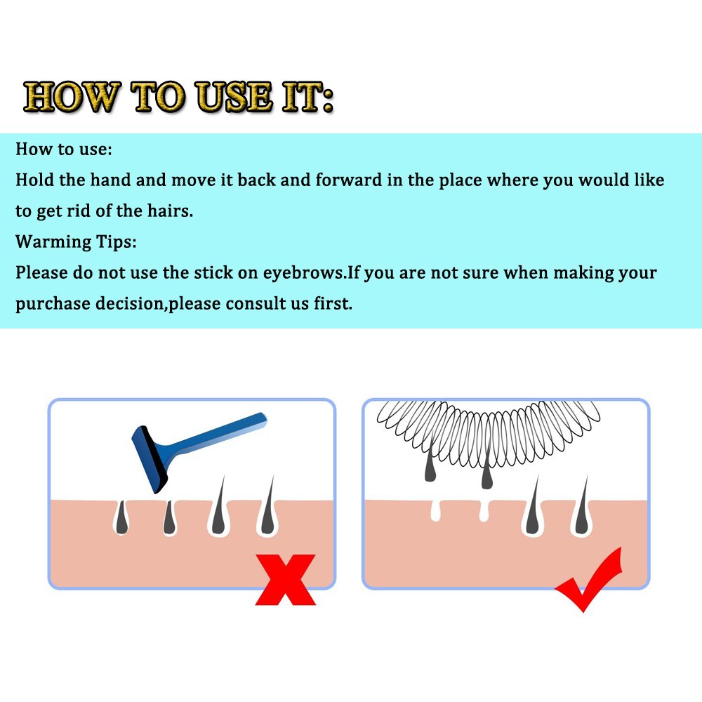 Roll it back and force upward over your face, then the spring grabs hairs on your face and pulls them out as you roll the spring.