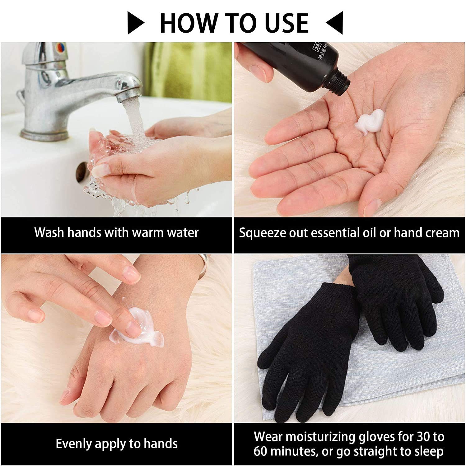 See visibly softer skin by morning! ➤Easy to Use In Home Solution Can be used simultaneously with your favorite lotion, hand cream or essential oils Latex free means no worries about allergic breakouts Washable and reusable for long lasting wear ➤Moisturizing Gloves 1 pair included so you can treat both hands at the same time One size fits most Makes a great gift! ➤ How To Use 1.