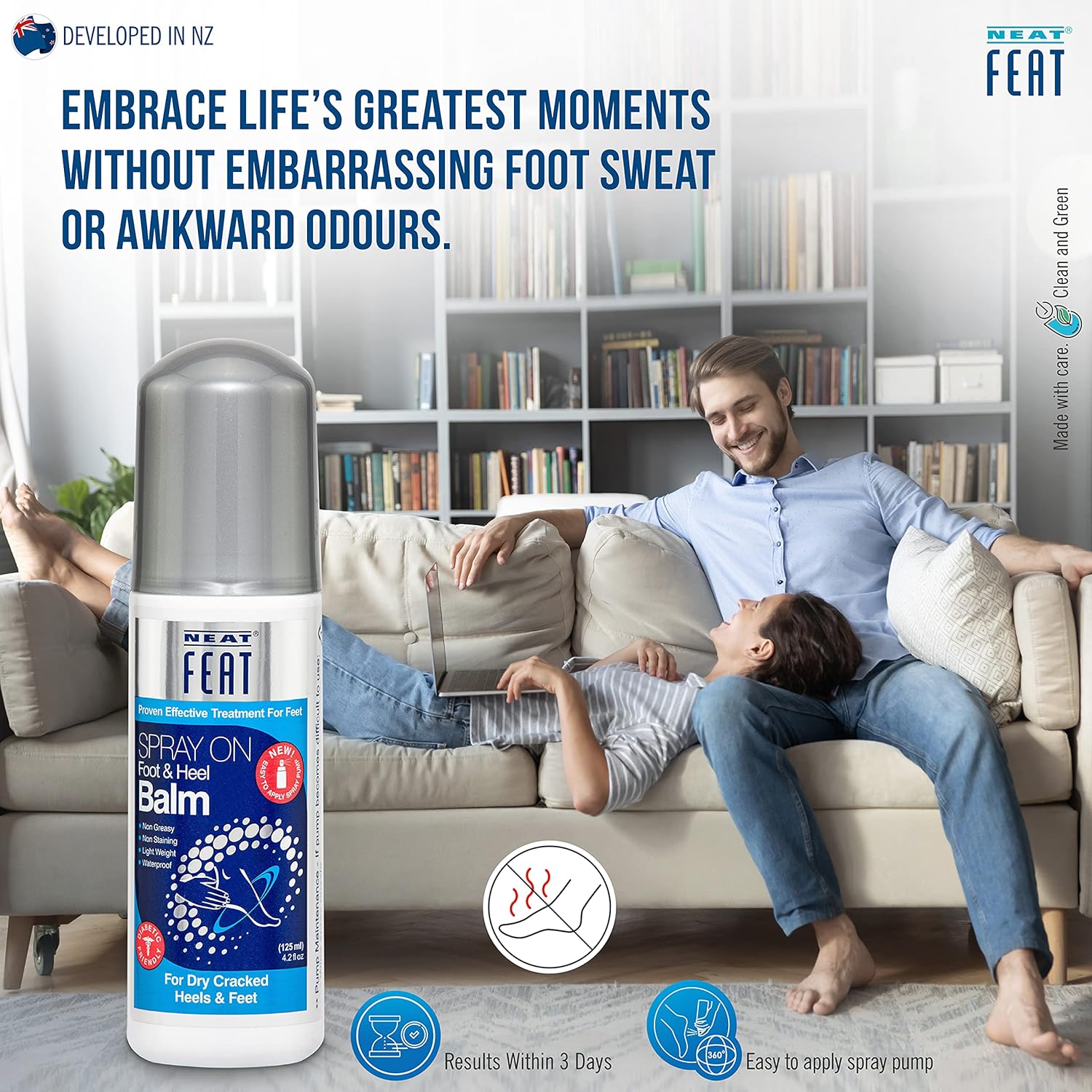 Appreciate your feet with the Neat Feat Foot & Heel Balm Spray! Made for easy spray application, this miracle balm repairs and revitalizes your feet with its beneficial ingredients like Urea and Lanolin.