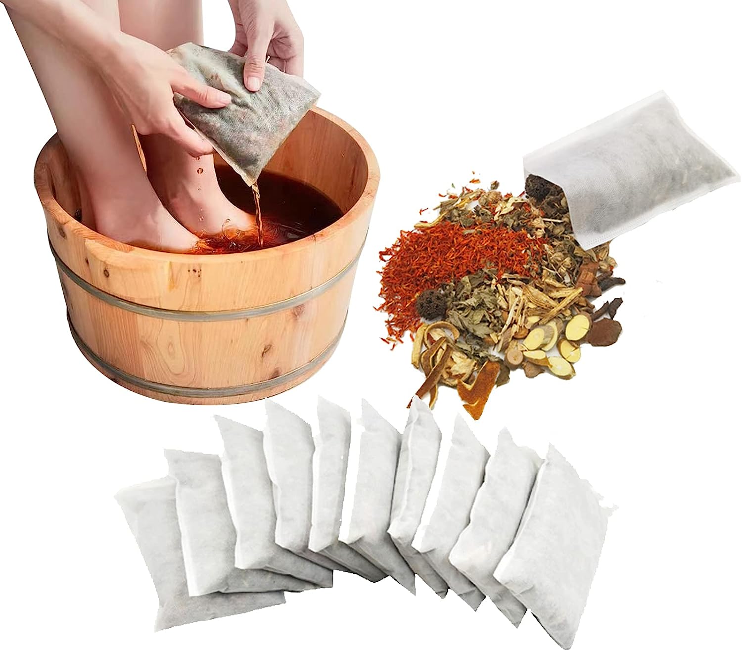 Sufficient portion (one pack is enough for three people) One pack is enough for three people: The foot bath pack is made up of 12 kinds of herbal crops, pure herbal materials, non-powdered, each bag has 10 sachets, 1 sachet is 30 grams, one sachet is enough 3 people use it together.
