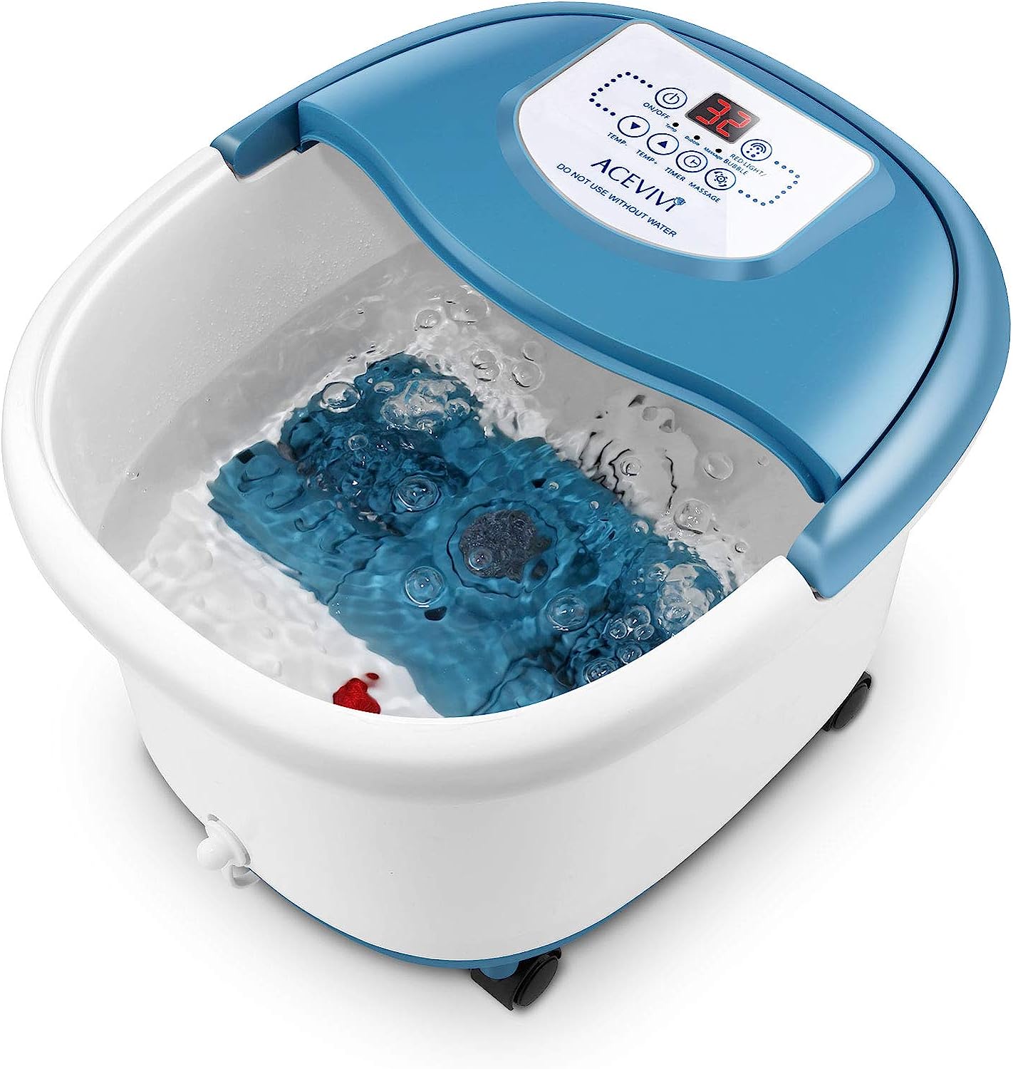 User-friendly Design – User-friendly design provides a handle, freely movable wheels and drainage channel, which can easily move the foot bath tub and empty the tub. Product size: 14.2″(L) x 17.5″(W) x 13.5″(H), the power is 450W.