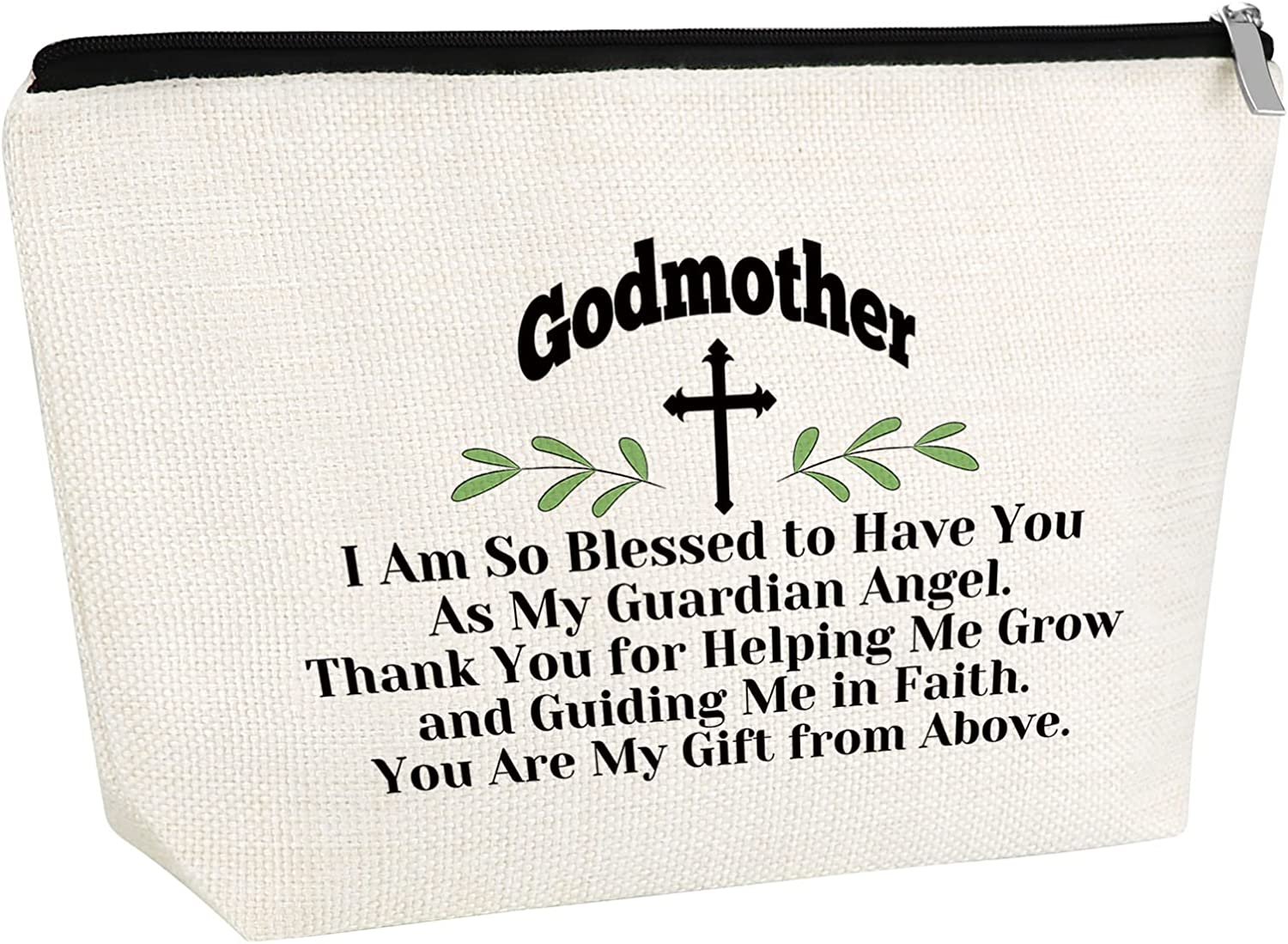 for Godmother from Godchild Godmother Makeup Bag Bible Verse Gifts Birthday Gifts for Godmother Mothers Day Gifts for Mom Grandma Cosmetic Bag Christian Religious Baptism Godmother Gift