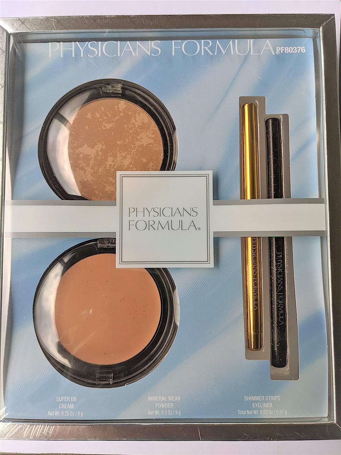 PHYSICIANS FORMULA 4 Piece Makeup Set PF80376 Includes: 1 Mineral Wear Powder 1 Super BB Cream 2 Shimmer Strips Eyeliner Quick and Easy Touch up On the Go