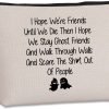 [Friendship gifts for women friends]: The portable makeup bag with lightweight design is easy to carry.The zipper is heavy duty and not cheap and flimsy,double-sided printed with:’’i hope we”re friends until we die then i hope we stay ghost friends and walk through walls and scare the shit out of people’’,this is a perfect gift to share with your friends and family.