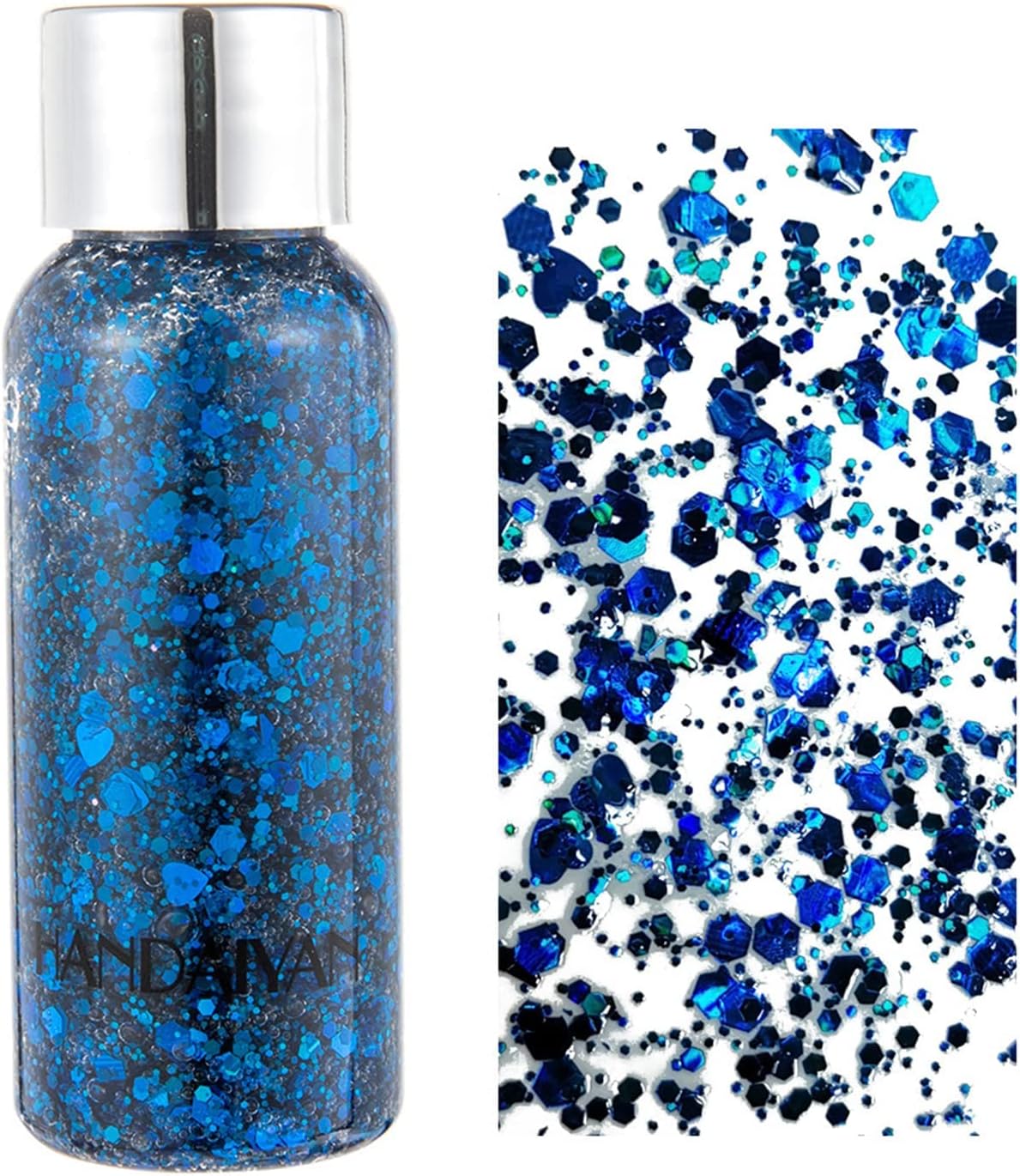Glitter GelThis is a body and face sequin with gel. The gel can be more convenient for you to put on makeup, and it is not easy to fall off.There are small stars, small moons and hexagonal sequins, which are very shiny and gorgeous, making your makeup more attractive and eye-catching.