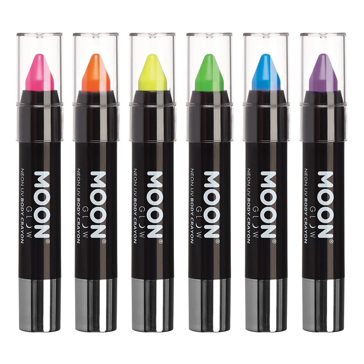 Create stunning effects on the face and body that glow in the dark! Bright neon coloured under natural lighting, our paints emit their own glow after being charged with any light source.