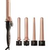 The Kiss 5 in 1 Curling Iron includes 3 interchangeable Ceramic Tourmaline Curling Irons and 2 wands.