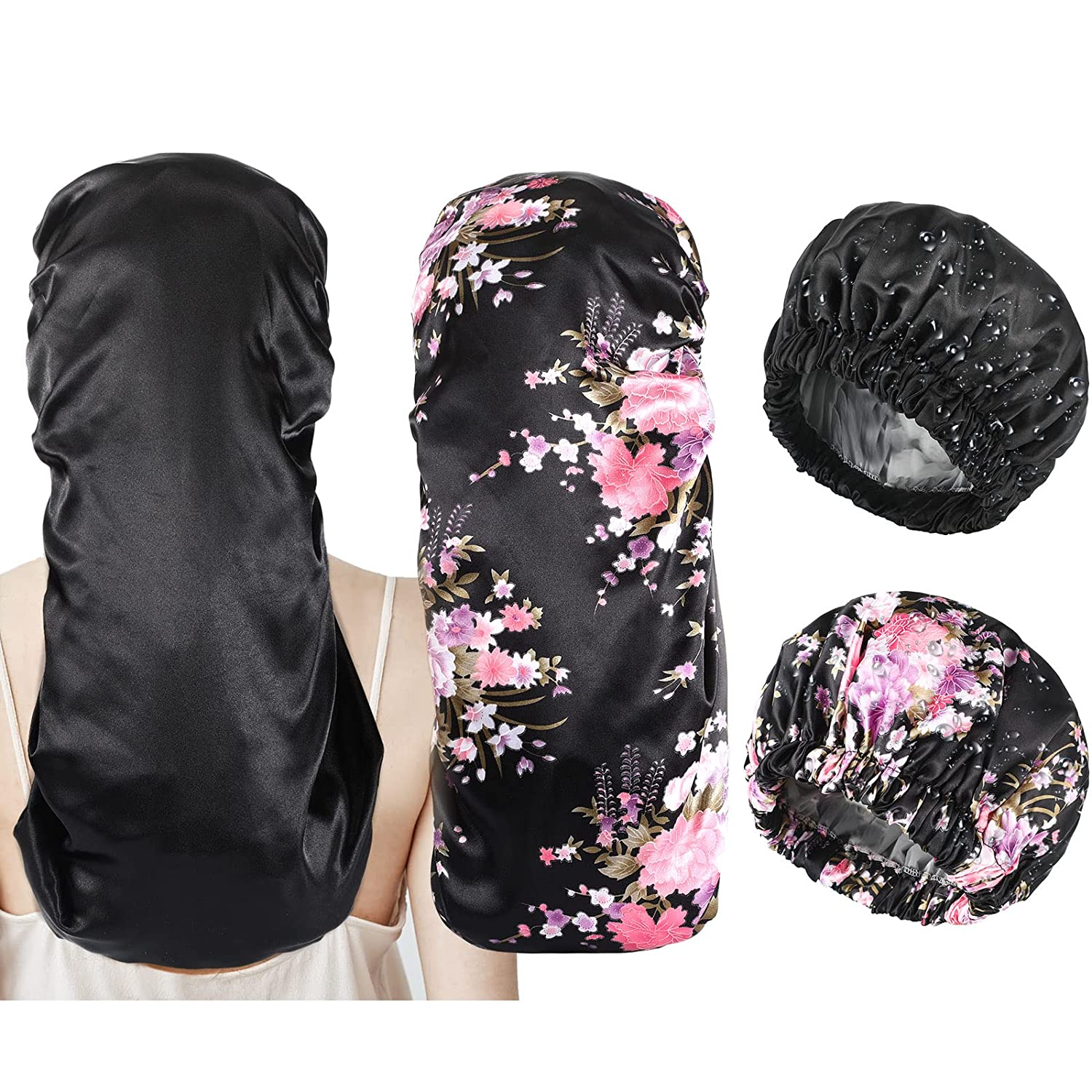 Grace Eleyae Ge Womens Adjustable Satin Lined Sleep Cap Slap Hair Care Beanie Hat, Pink