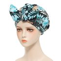 Guinequeen Luxury Shower Caps For Women Reusable Waterproof Shower Cap Elastic Fashion Washable Shower Caps For Long Braiding Curly Hair(Blue Leaves)