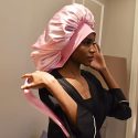 Satin Bonnet For Curly Hair With Tie Band: Our Satin Bonnet For Curly Hair attached with a wide soft skin-friendly,high elastic Band, the Band can go across head and the Tie on head, well keep the Silk Bonnet For Curly Hair on head over the Night
