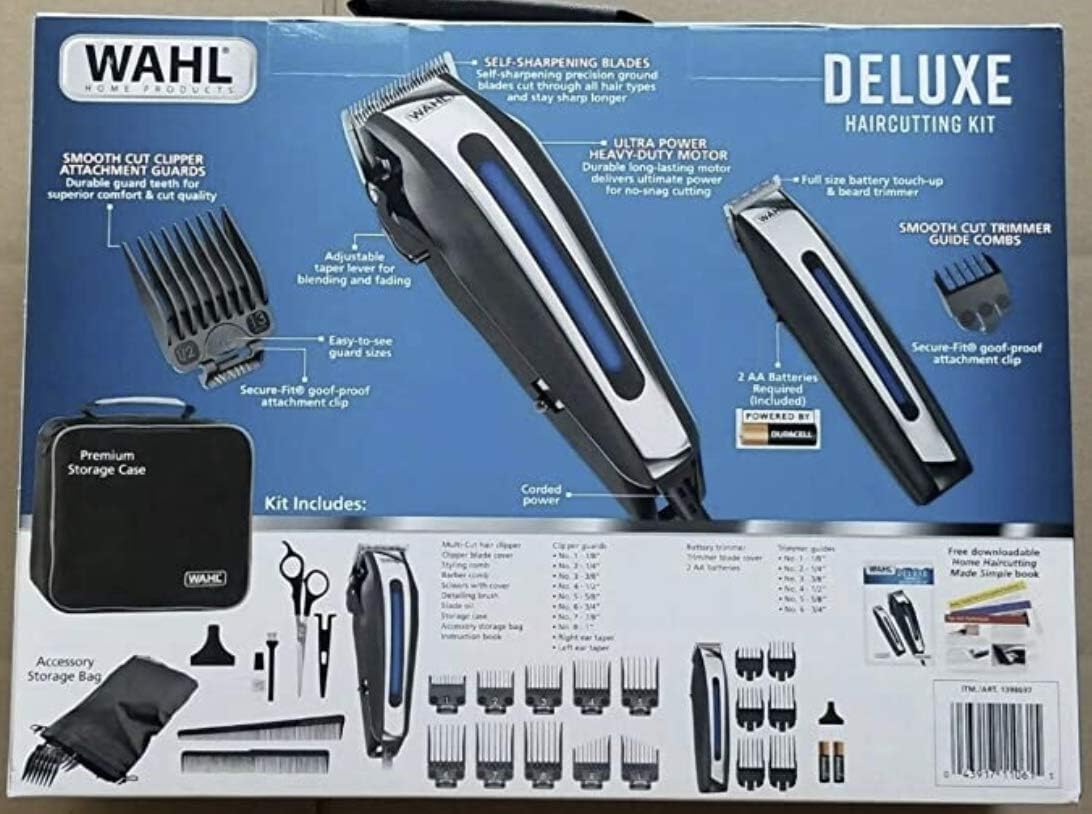 Wahl Deluxe Haircutting Kit provides complete all-in-one haircutting, touch-up, and beard trimming kit.