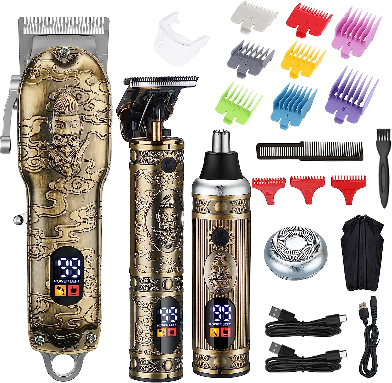 Hair Clippers for Men Cordless Hair Trimmer Beard Trimmer/Nose Trimmer Professional T-Blade Trimmer USB Rechargeable Hair Cutting Grooming Kit Barber Clippers Set LED Display