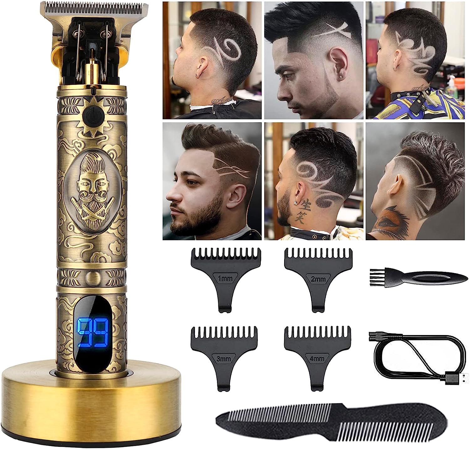 Hair and Beard Clipping Kit, Clippers for Hair Cutting with 11 Attachment Guards for Moustache Head Beard, Mens Grooming Set for Haircutting Trimming Detailing
