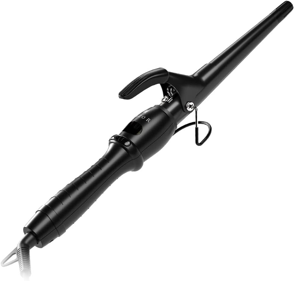Hair Curler with Short Clamp, 1/2 to 1 Inch Ceramic Tapered Curling Wand Salon Auto Shut Off Curling Iron with Cool Tip Black