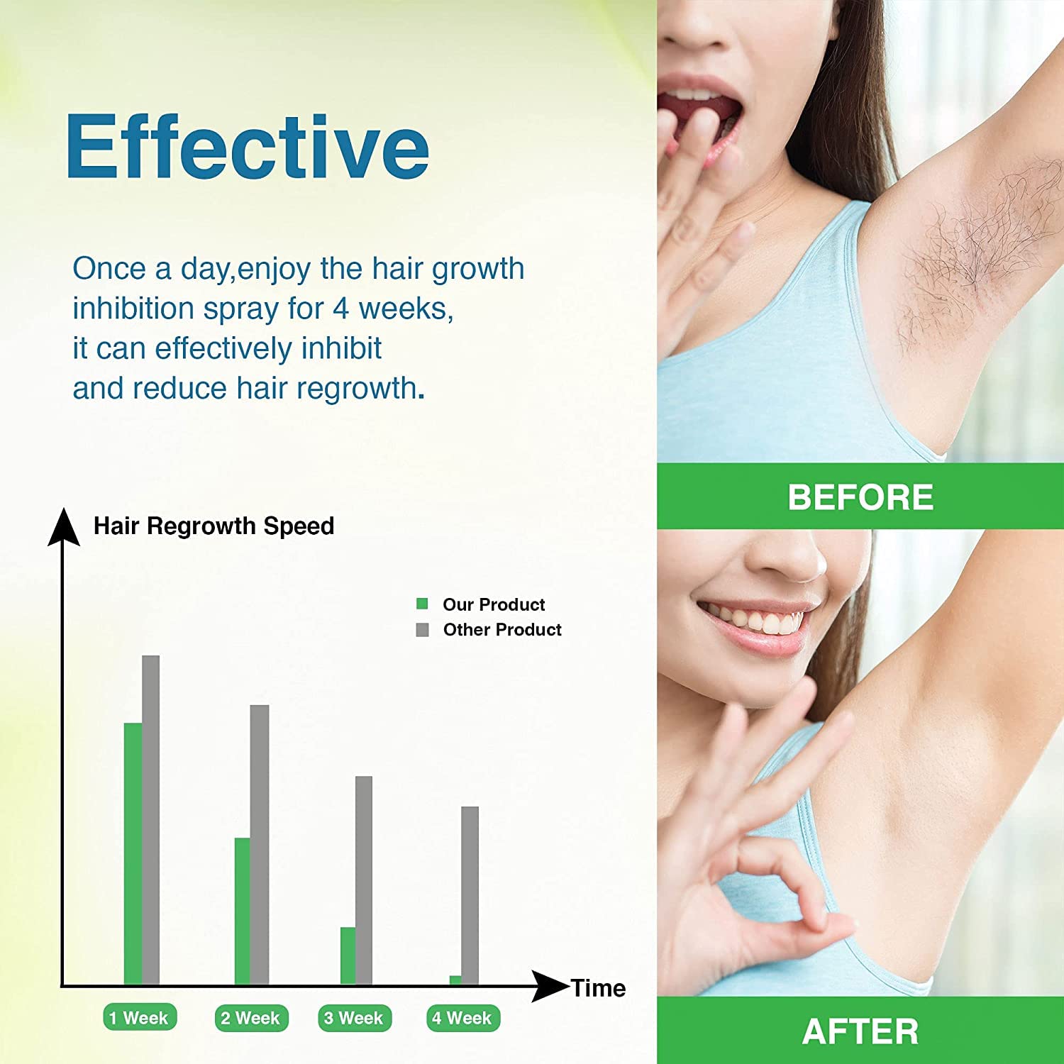 Neomen Hair Removal Spray, Non-Irritating Hair Removal Inhibition, Hair Stop Growth Spray with regular use of the active ingredients considerably reduce, weaken and delay the regrowth of hair.
