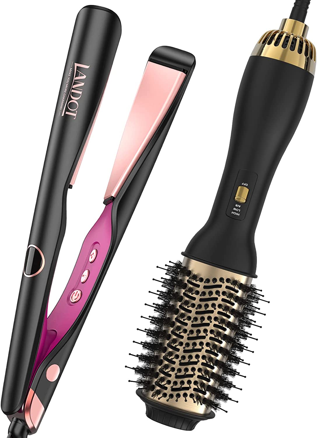 Hair Straightener and Curler 2 in 1 with One-Step Blow Dryer Brush and Volumizer