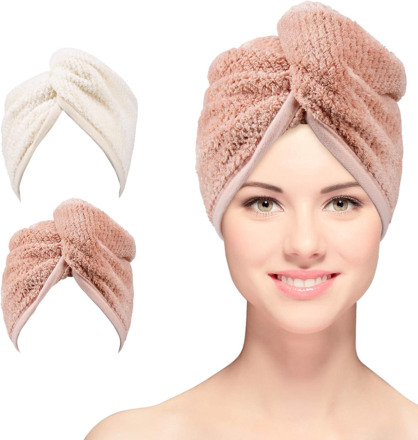 LIGHTWEIGHT & SOFT HAIR TOWELMicrofiber hair towel is durable the advanced fabric it feels soft and ultra lightweight. The twist towel has elastic edges that secure it well on the head. As you walk around your home, you do not have to worry about it falling off.