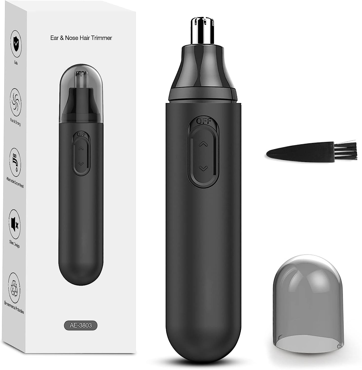 Nose Hair Trimmer: Comes with advanced protective cutter head and 360° rotary dual-edge blades, it”s the easiest and safest trimmer for nose hair and ear hair on the market. Causes neither pain nor cuts.