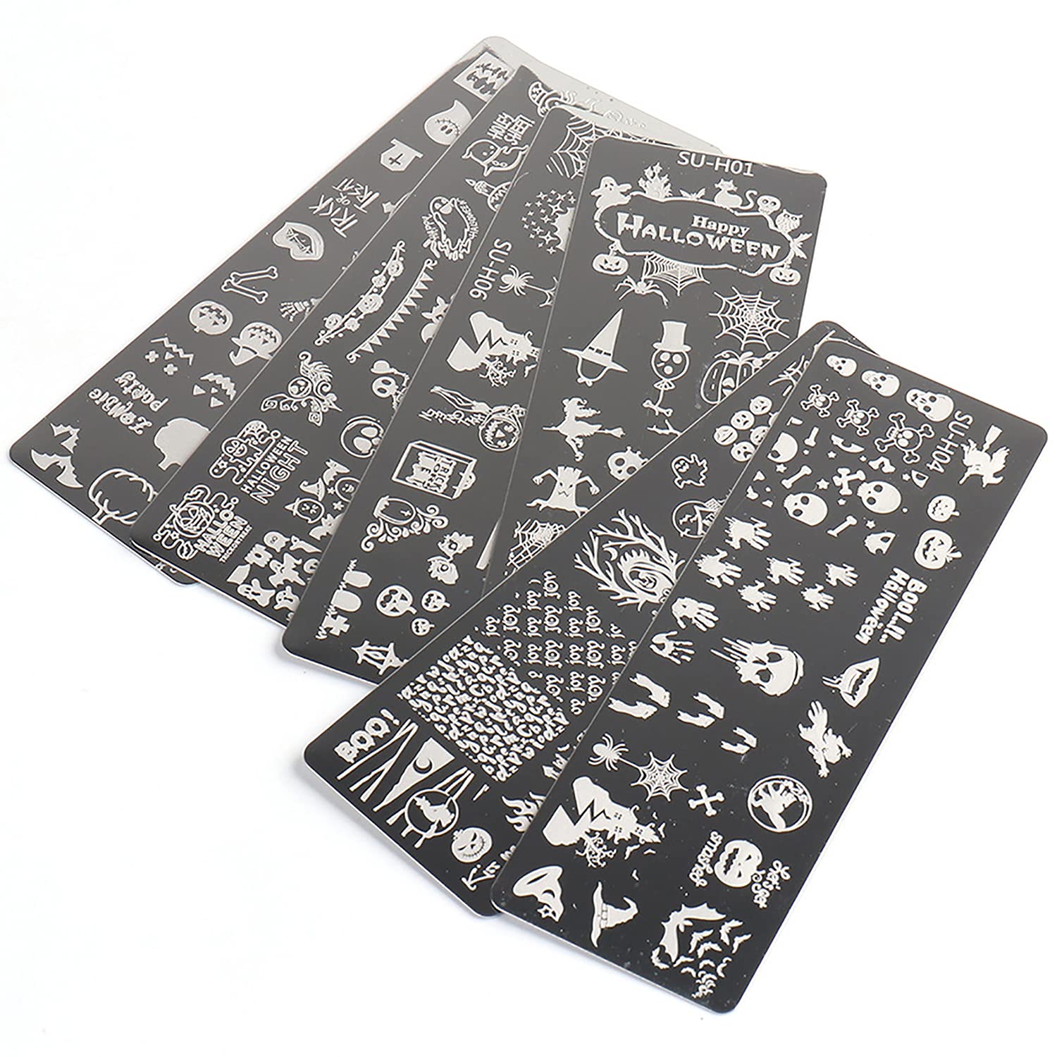 Specification: Item Type: 6 PCS/set Halloween Nail Stamping Plates Set Nail Art Designs Color: As the picture shows Package:6 PCS Nail Stamping Plates+ 1 Stamper + 1 Scraper Lace Feature: 1.