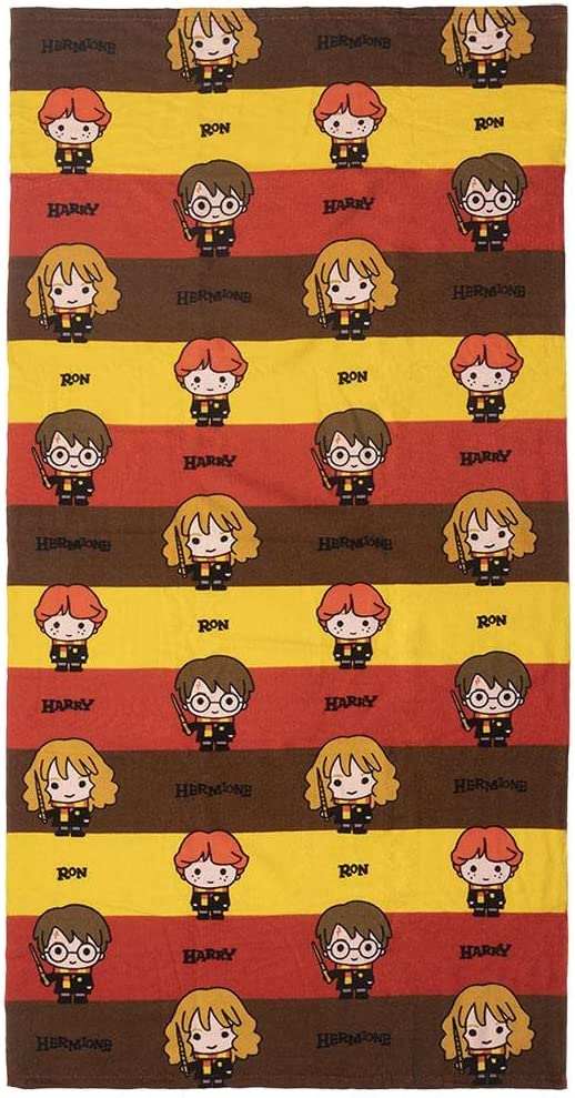 Harry Potter full print bath beach towel Chibi Characters print original design Large Size: 70 x 140cm – 55 x 27 Inches Material Polyester, soft feel, absorbent and fast dry.