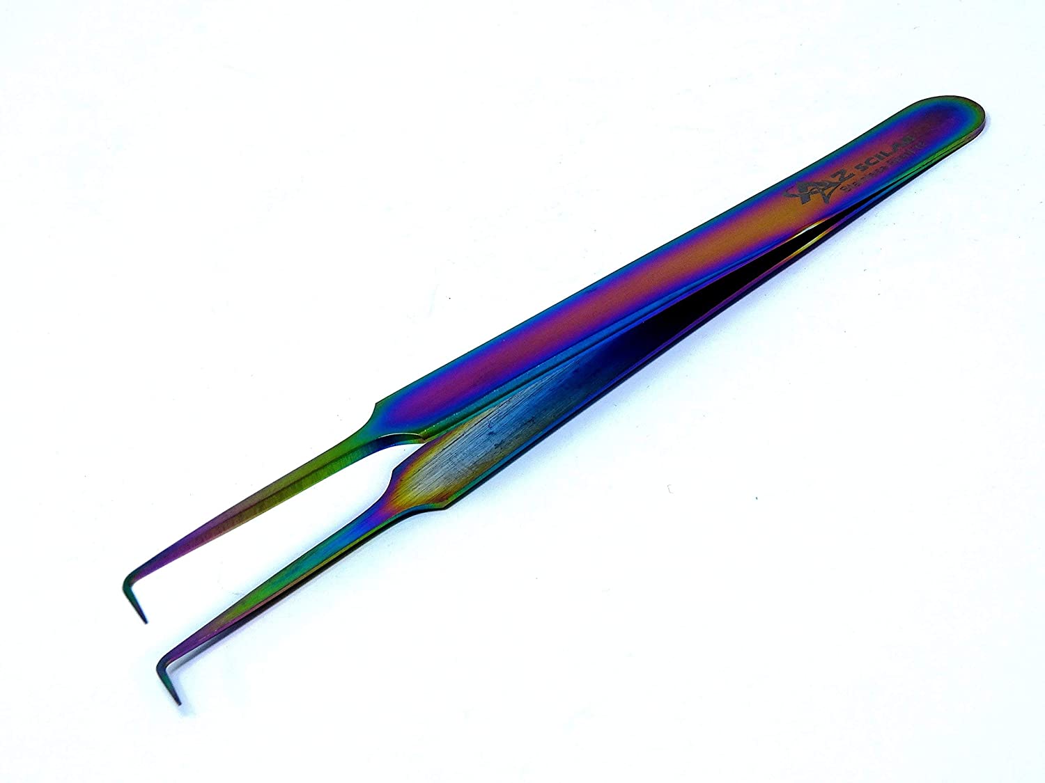 Heavy Duty Stainless Steel 3D 5D 6D Volume Eyelash Extension Tweezers Fine Point (A2ZSCILAB) (Right Angled 90 Degree Plasma Coated) : Beauty & Personal Care