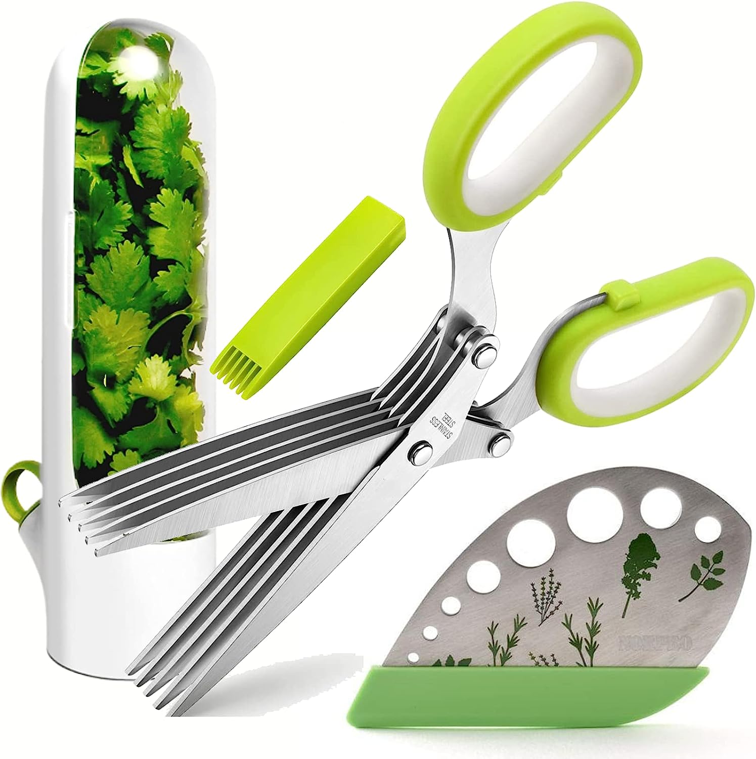 Total Herb scissors and veggie pod We have the perfect answer for you with the Total Herb cutting and store in the fridge for a longer time Multi-Function Kitchen 5 blades shears can be used in your DIY products for shredding Papers or Plastic and making confetti.