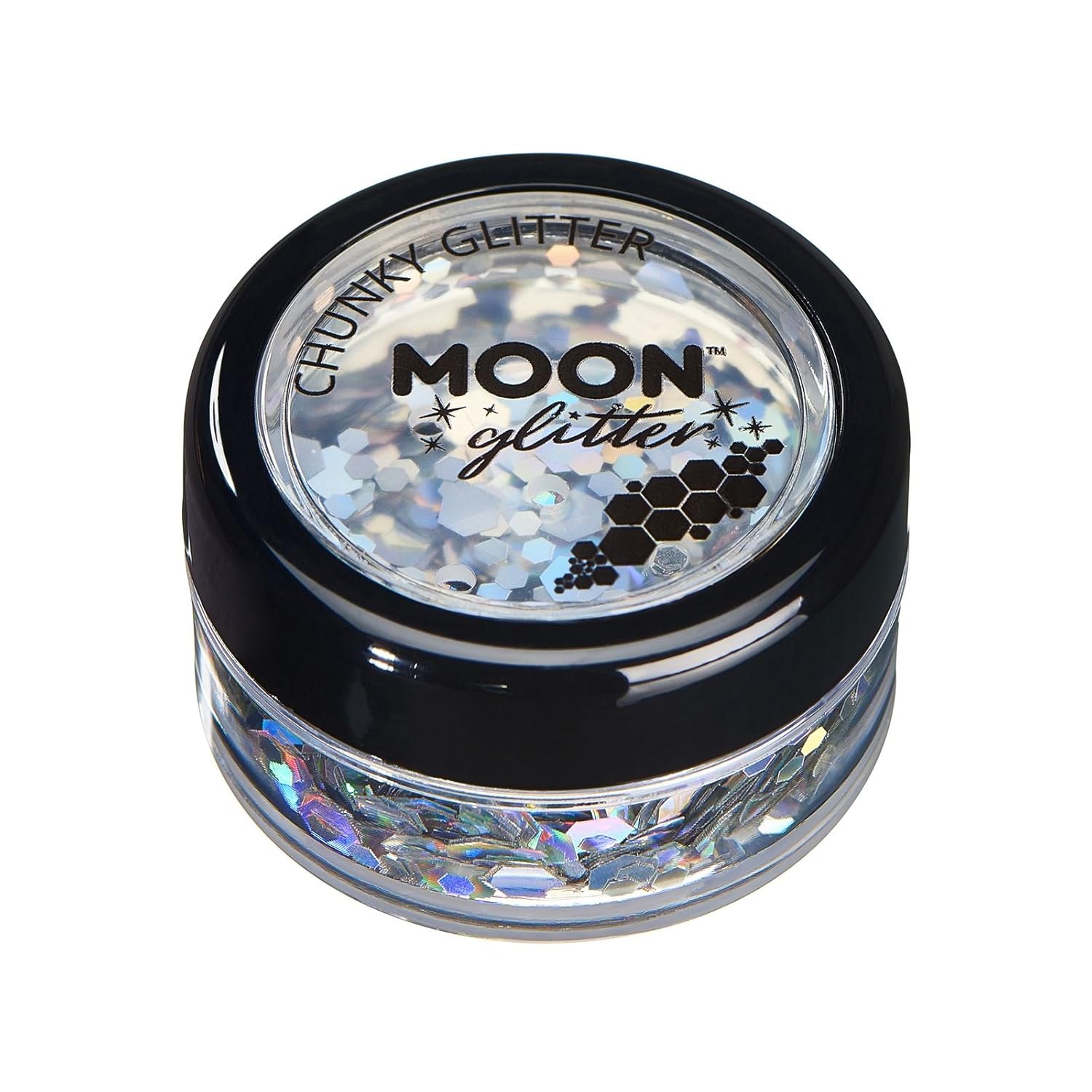 Available in a variety of colours, shapes and sizes, Moon Glitter is made up of small cuts of cosmetic glitter which will add a sparkle to any occasion.