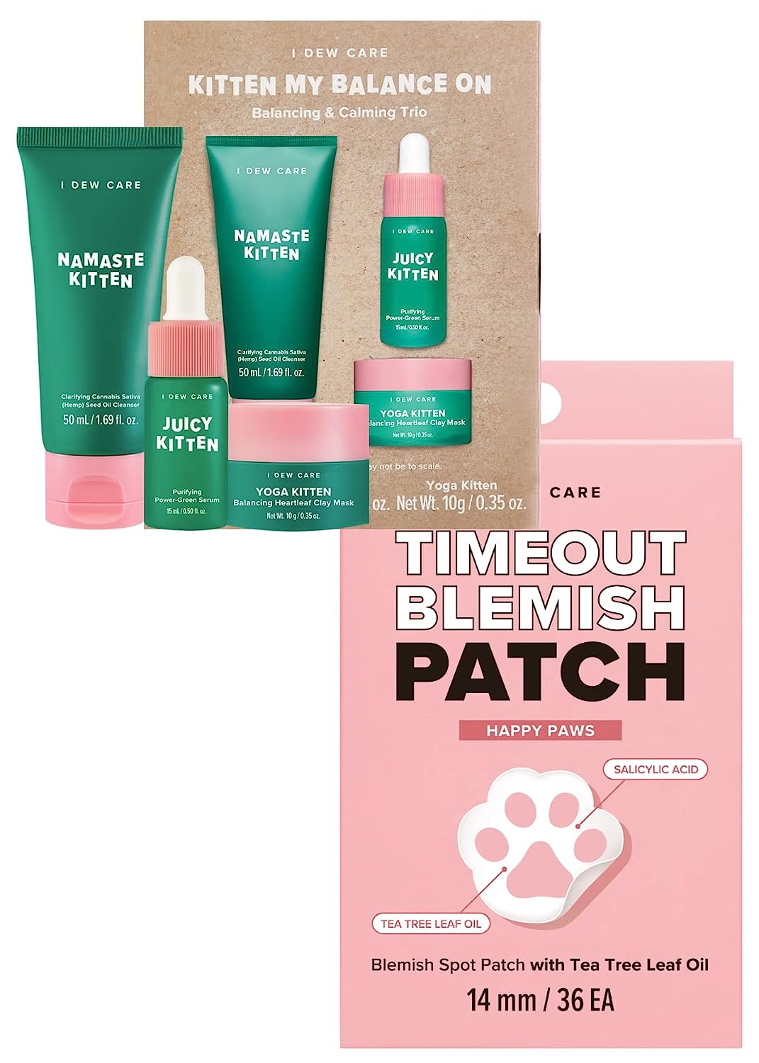 Hydrocolloid Acne Pimple Patch – Timeout Blemish Happy Paws | 36 Count + Skin Care Set – Kitten My Balance On Bundle