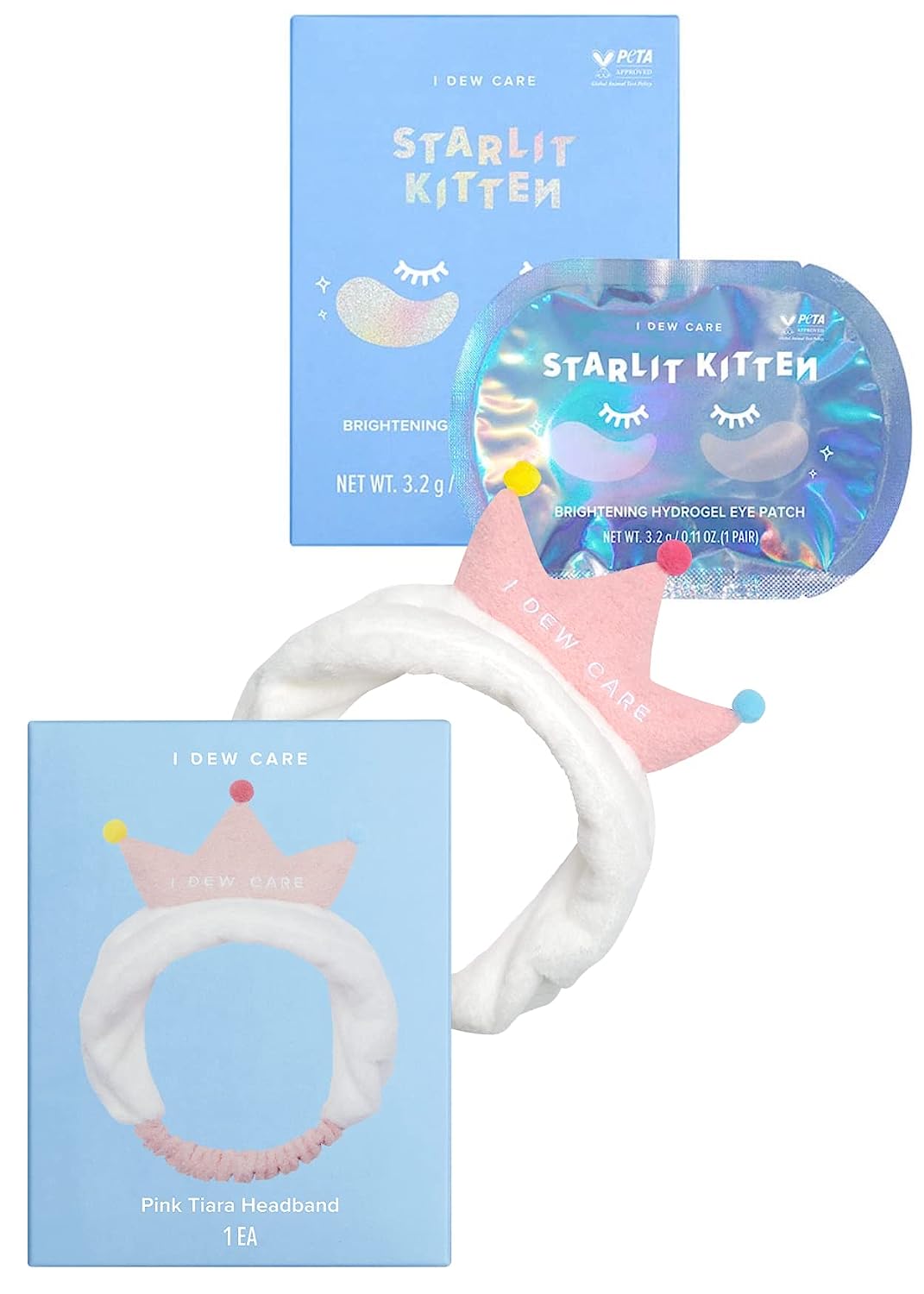 Hydrogel Eye Patch – Starlit Kitten, 5 EA + Face Wash Headband – Pink Tiara, 1 Count Bundle