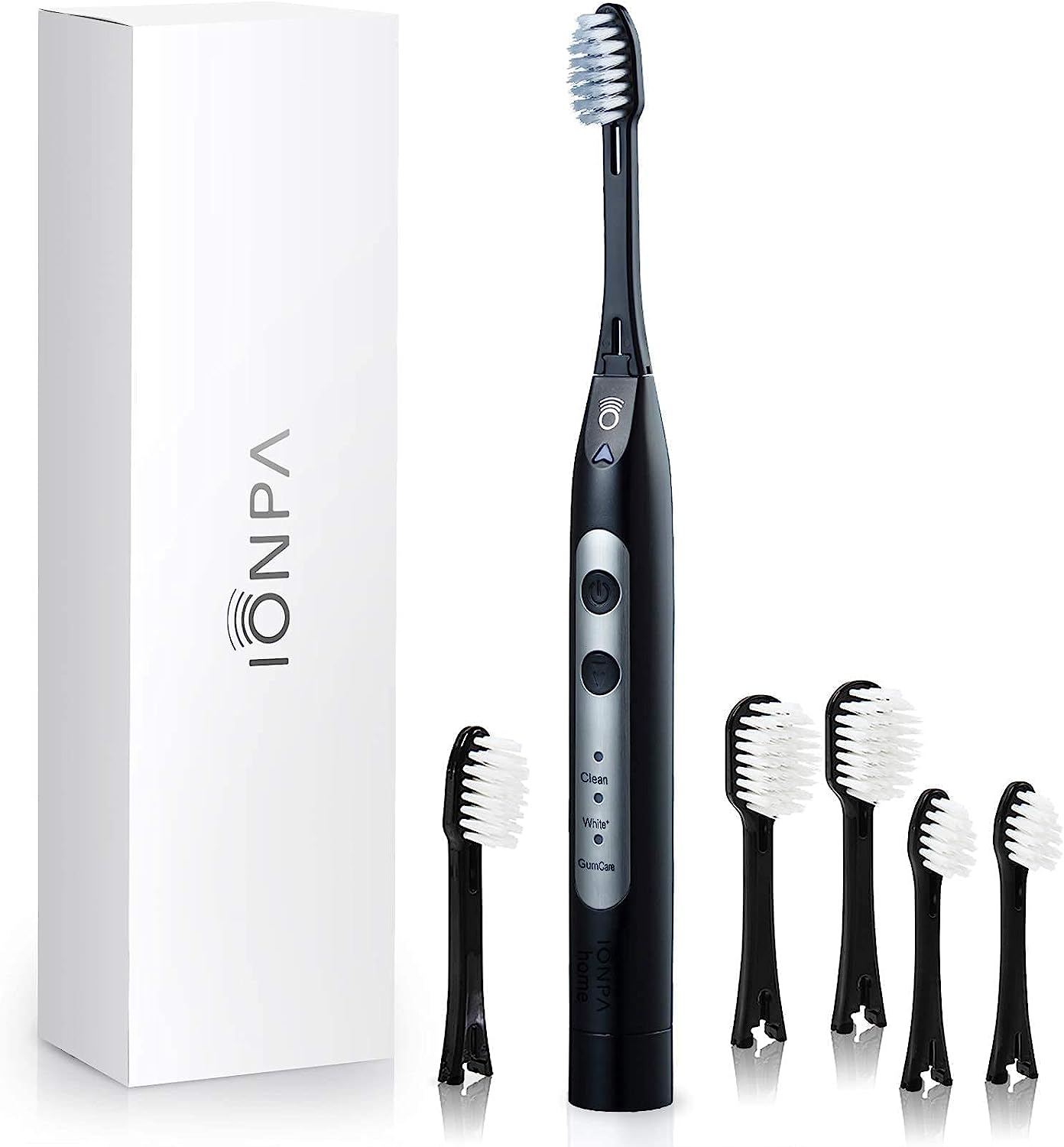 IONPA DH Home Black Special Bundle Ionic Power Electric Toothbrush Black, 2×Regular, 2×Wide, 2×Compact Brush Heads, Made in Japan, DH-311 BK