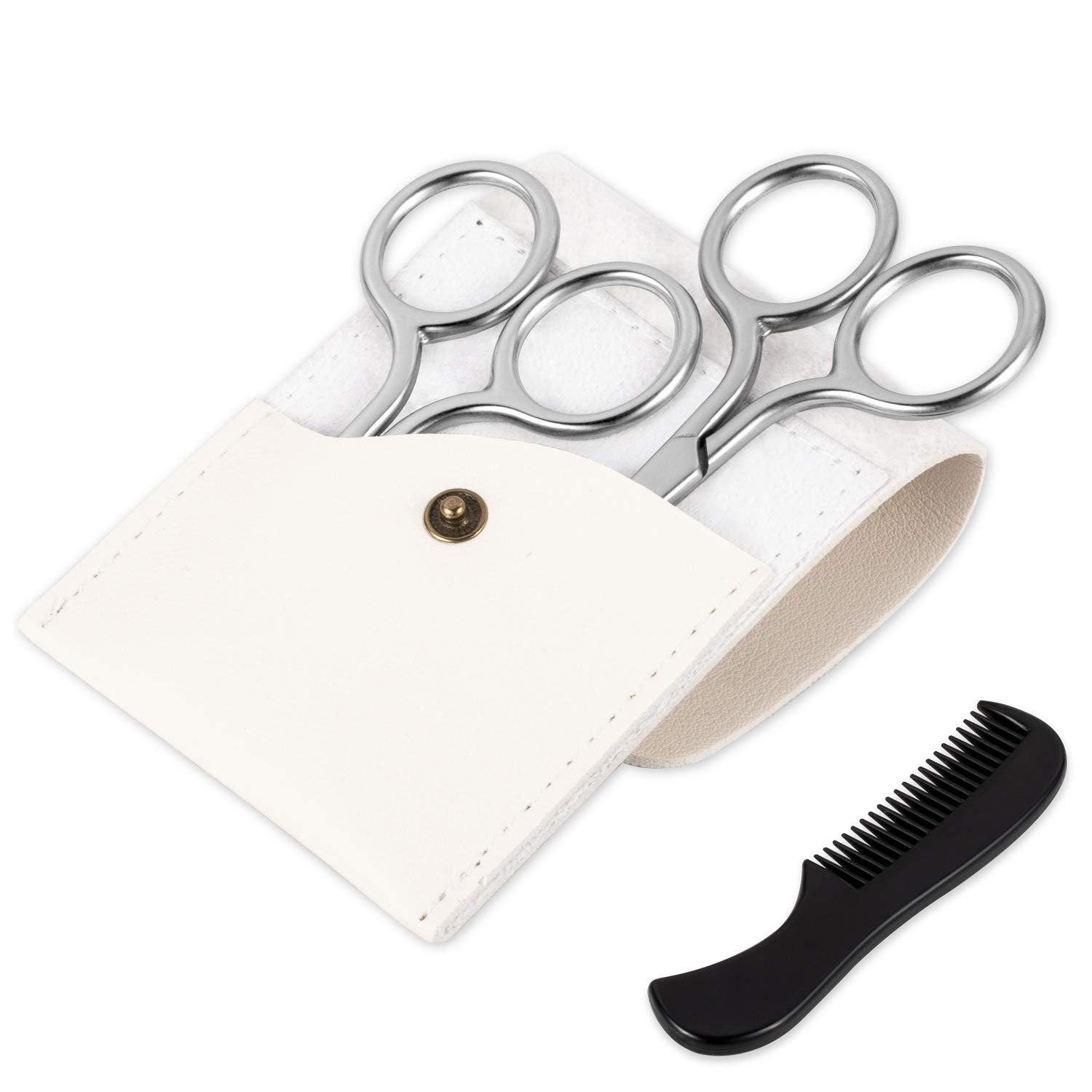 The high-quality, Italian-made scissors feature pointed tips to precisely trim long, unruly eyebrow hair.