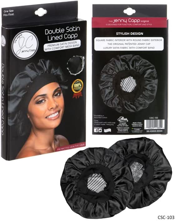 Our double satin lined capp comes with a sleek satin exterior and a printed interior. The premium satin design includes a comfort mesh band for convenience and a secure fit. The capps are the perfect way to protect your hair. They are reversible, comfortable, and very soft. The originally patented Jenny Capp design is made for function, comfort, and style. To care for your Jenny Capp, simply hand wash it in warm water using mild soap, and then hang it out to dry.