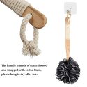 Anti-Slip Handle with Lanyard: Loofah on a stick with rope wrapped around the wooden handle, provides a comfortable and non-slip grip even wet, not easy to fall off when used; With the lanyard on the handle, you can hang this loofah back scrubber on the bathroom wall or door to air dry the loofah stick after use;