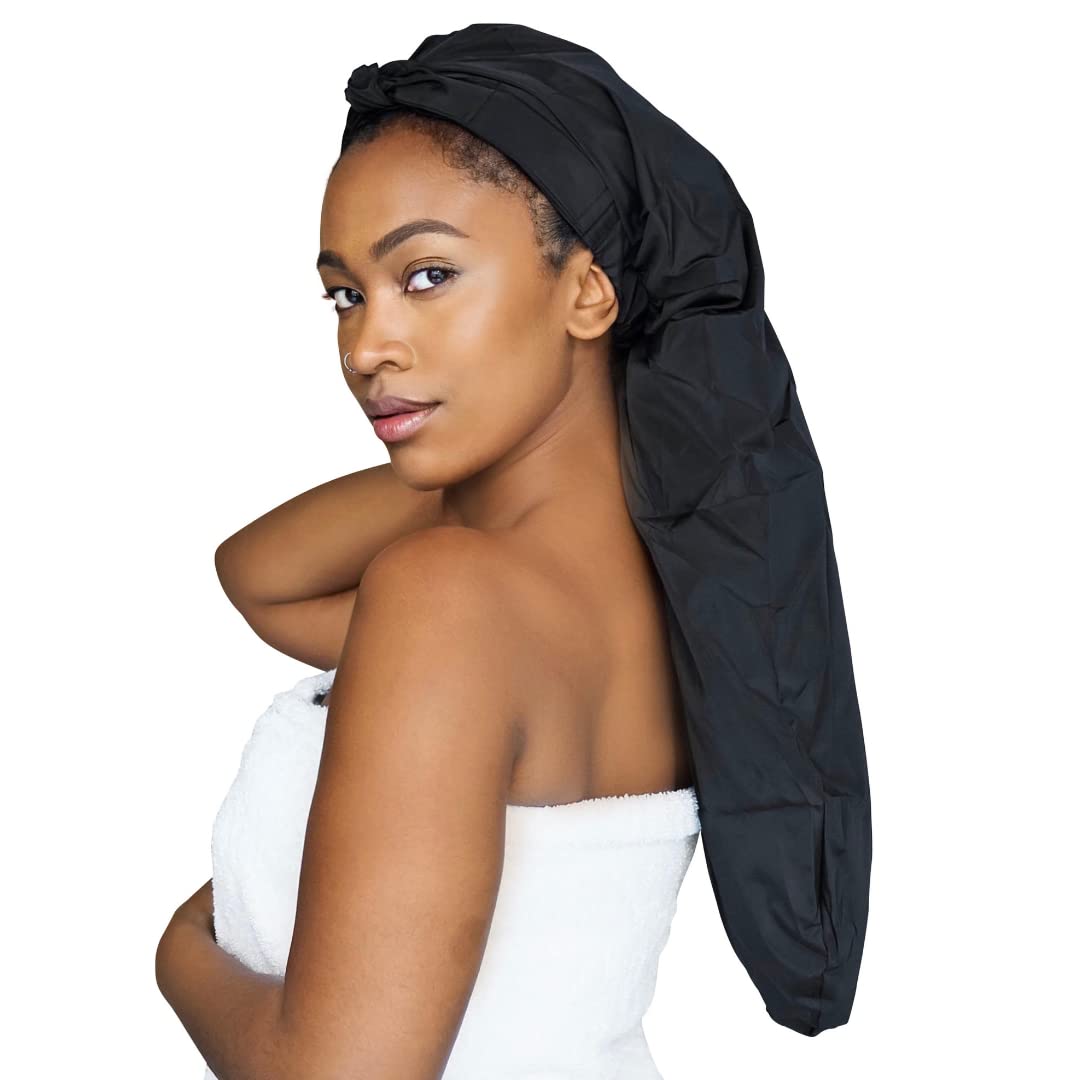 Features: Extra Large: VEABEST shower cap for braids is at 40cm in diameter, its a lot bigger than a typical 12 inch shower cap,specially made and designed for big, long, and thick hair styles including: Locs, Braids, Perms.XL size bath bonnet is large enough to hold all your braids and still have plenty of room left. Reusable & Waterproof: VEABEST shower cap is made from double-layer fabric, super waterproof, which can effectively keep your hair dry when bathing. Youll never have to worry about the both your shower cap and hair getting wet again. Comfortable to wear: there are elastic bands inside of these extra large shower caps, which will offer you comfortable and flexible wearing experiences. Multi-Purpose: VEABEST Large shower cap can be used for showering, bathing, facial cleaning, makeup, SPA, cooking, household cleaning, etc, to perfectly maintain your hairstyle. This will bring convenience to your everyday life! Great Gift: Each package includes 2 packs jumbo shower caps(Black and white). A great gift for wife, husband, daughter, children, friends.Warm tips:To make it last longer, dont wash it in hot water.