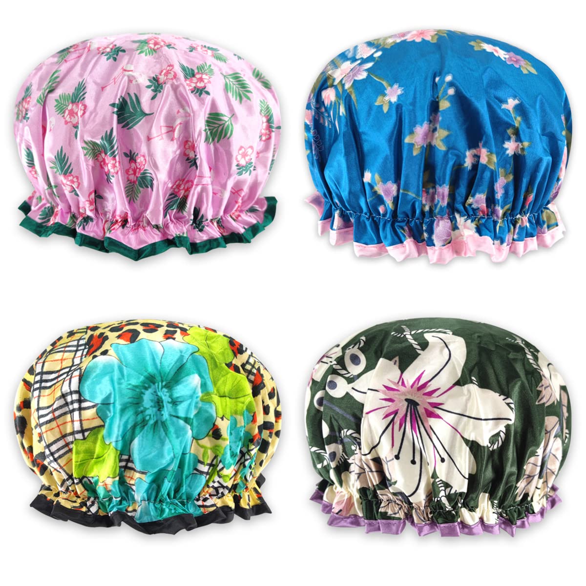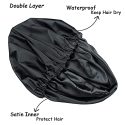 Double Layer. Waterproof shower hat is made by 2 layer good satin fabric, prevent your hair from frizz. The custom-made outer satin has a waterproof layer, keep your hair dry when bathing.