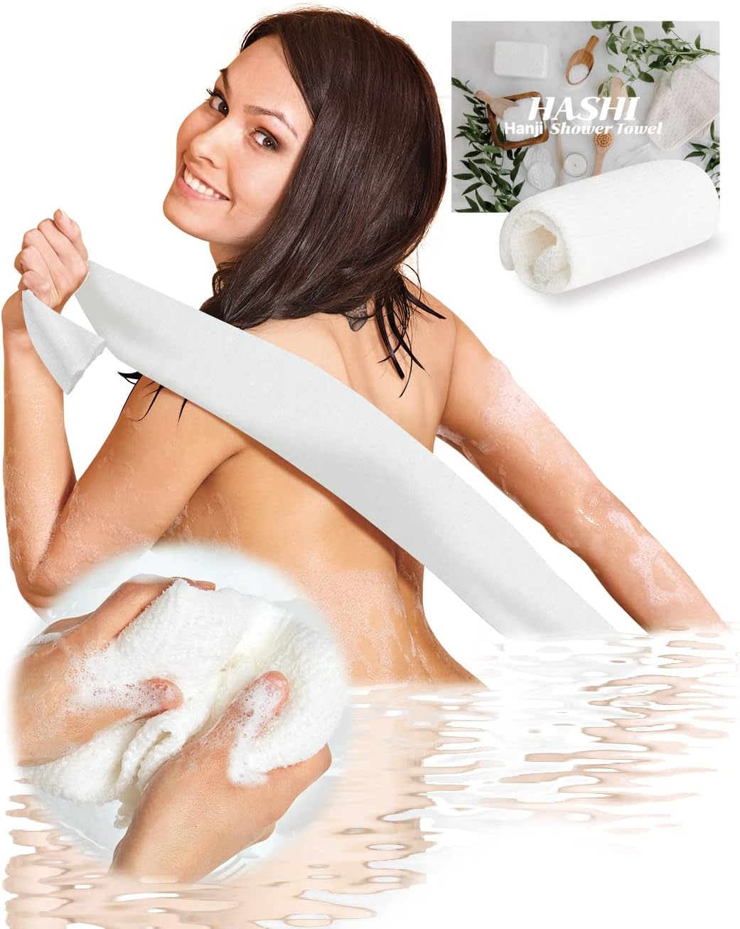 PRODUCT DESCRIPTIONS & APPLICATIONS – The towel has a size of 11.4 x 38.2 inches; It can be rolled up and used like a shower ball. Also, it can be applied to every part of your body to gently extrafoliate your skin. It is a premium quality product that can be washed by hand or washed with laundry machine; It can be reused for many times thanks to its excellent durability.